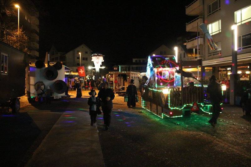 Das Fest startet bereits am Nachmittag mit dem Umzug der Fasnachtsgesellschaft, gefolgt vom Monsterkonzert der Guggen. Der offizielle Feststart mit Musik, Verpflegung und Party ist um 16:30 Uhr.
